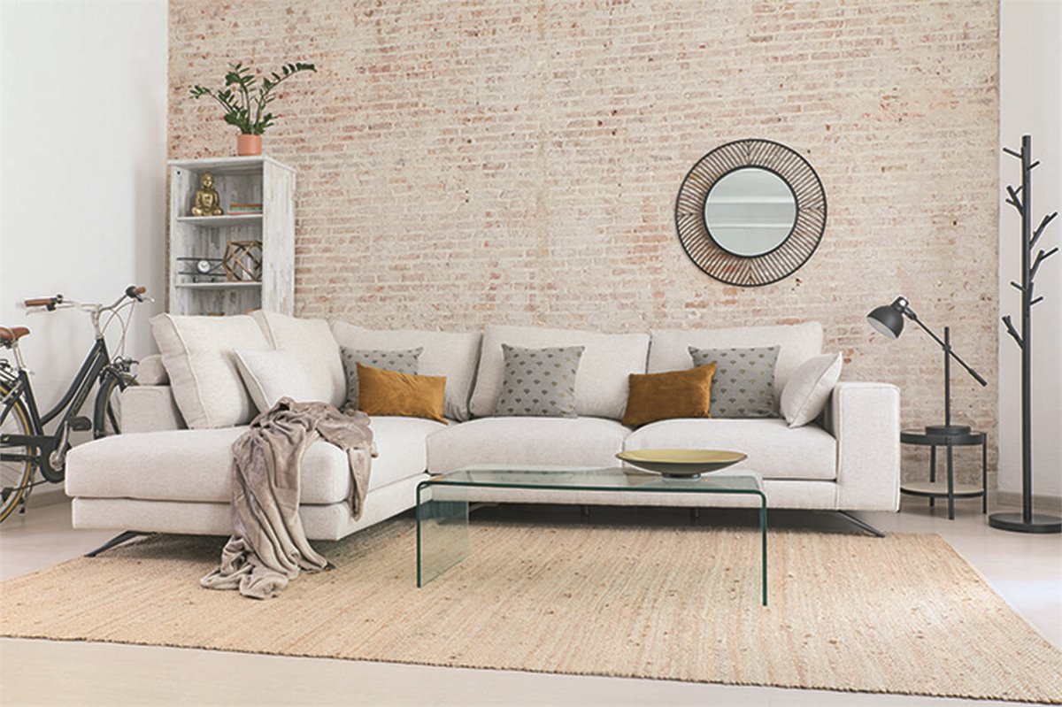 Aproveite ao máximo o espaço da sua sala de estar com o sofá de canto direito MERCURY. Também é conhecido como sofá de esquina, sofá em L ou “ele”, e até sofá em U. Independentemente da designação correta, este modelo não vai desperdiçar um único centímetro da sua sala porque o formato em ângulo reto vai encaixar-se perfeitamente em todos os cantos e recantos. SOFÁ DE CANTO MERCURY com revestimento em tecido, estrutura em madeira de pinho e contraplacado, suspensão NEA, densidade do assento em borracha 30 kg/m3.