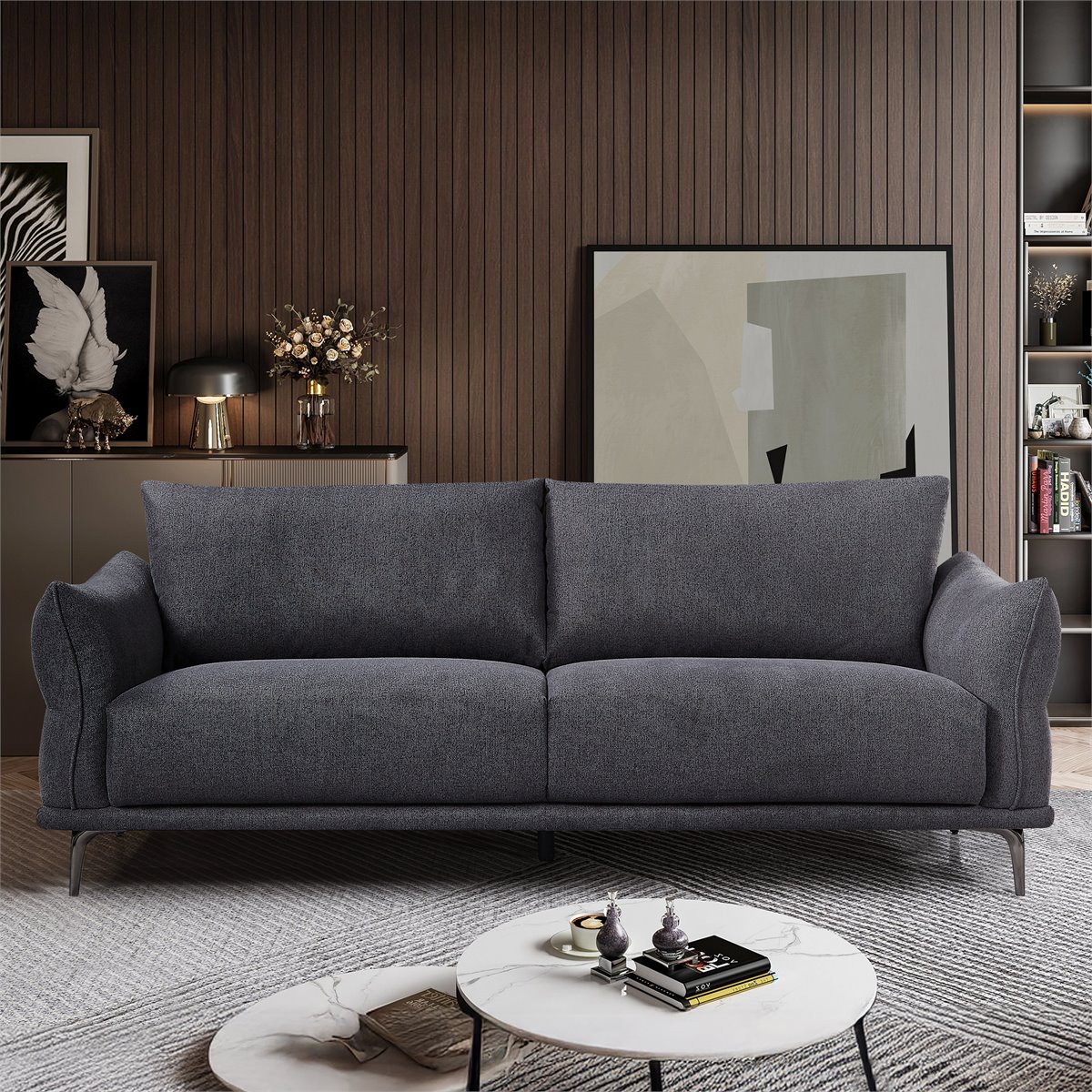 Eleve o conforto e o estilo da sua sala com o sofá de 3 lugares ALIX, uma combinação perfeita de funcionalidade e design sofisticado. A cor cinzenta escura, elegante e versátil, encaixa harmoniosamente em qualquer decoração moderna. Com uma estrutura robusta em madeira de eucalipto e contraplacado, o ALIX garante durabilidade e resistência sem comprometer a estética. O estofamento em tecido macio oferece um toque suave e acolhedor, proporcionando o máximo conforto em cada momento.