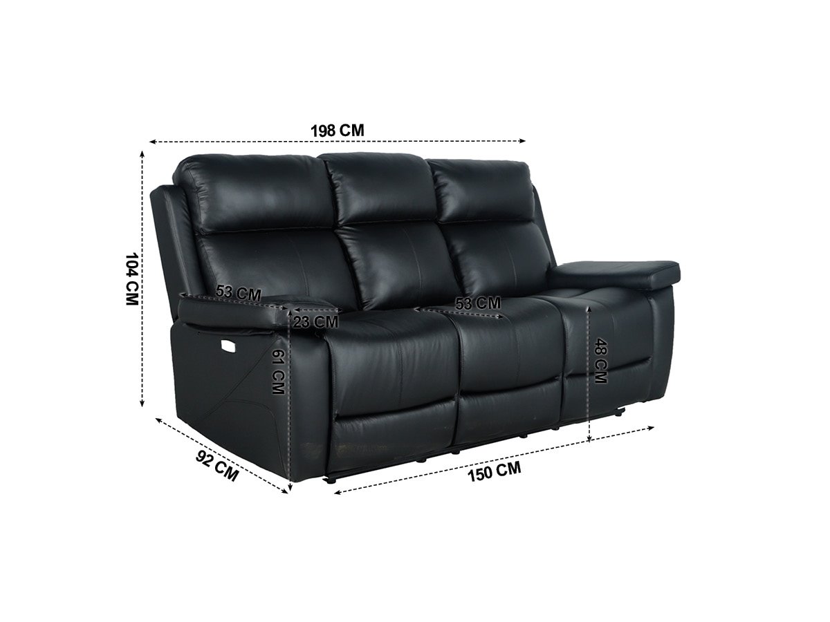 Procura o sofá perfeito para relaxar e desfrutar do máximo conforto em sua casa? Apresentamos o modelo THEA! Este sofá de 3 lugares com 2 assentos relax elétricos é a combinação perfeita de estilo, conforto e funcionalidade. Numa elegante cor preta, estrutura metálica resistente e revestimento em couro e PU, este sofá não só fica fantástico na sua sala de estar, mas também lhe vai proporcionar a máxima durabilidade. As medidas de 198 cm de largura, 104 cm de altura e 92 cm de profundidade garantem um amplo espaço para relaxar! Não espere mais e deixe-se envolver pelo conforto supremo que THEA oferece. Compre-o agora mesmo e transforme a sua sala num habitat de descanso!