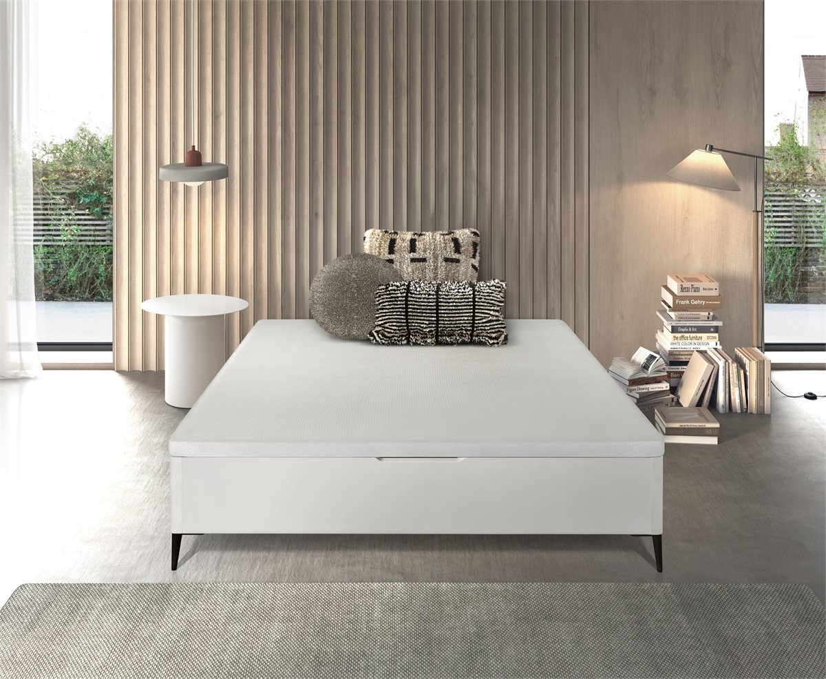 O canapé MOMA combina funcionalidade e design em um único móvel. Seu baú de madeira na cor Nut, um tom de carvalho moderno e atualizado, oferece grande capacidade (24 cm úteis), estrutura robusta com fundo de 12 mm e tampo reforçado com tubo de aço e tecido 3D respirável. Inclui pés metálicos tipo agulha de 12 cm que elevam o design. Abertura fácil graças ao puxador embutido. Ideal para quem busca estilo e armazenamento, além de ser compatível com robôs de limpeza. Disponível em várias medidas.