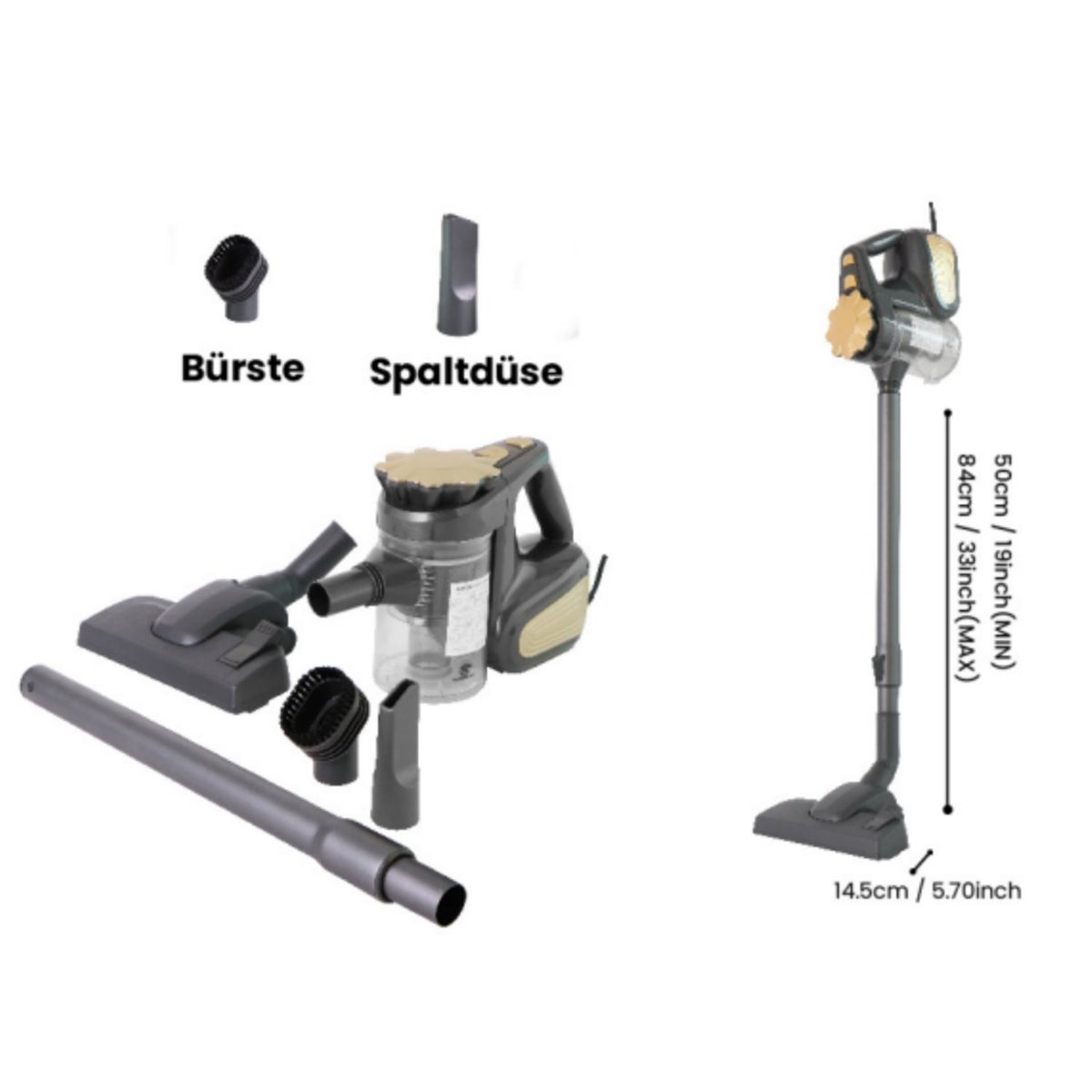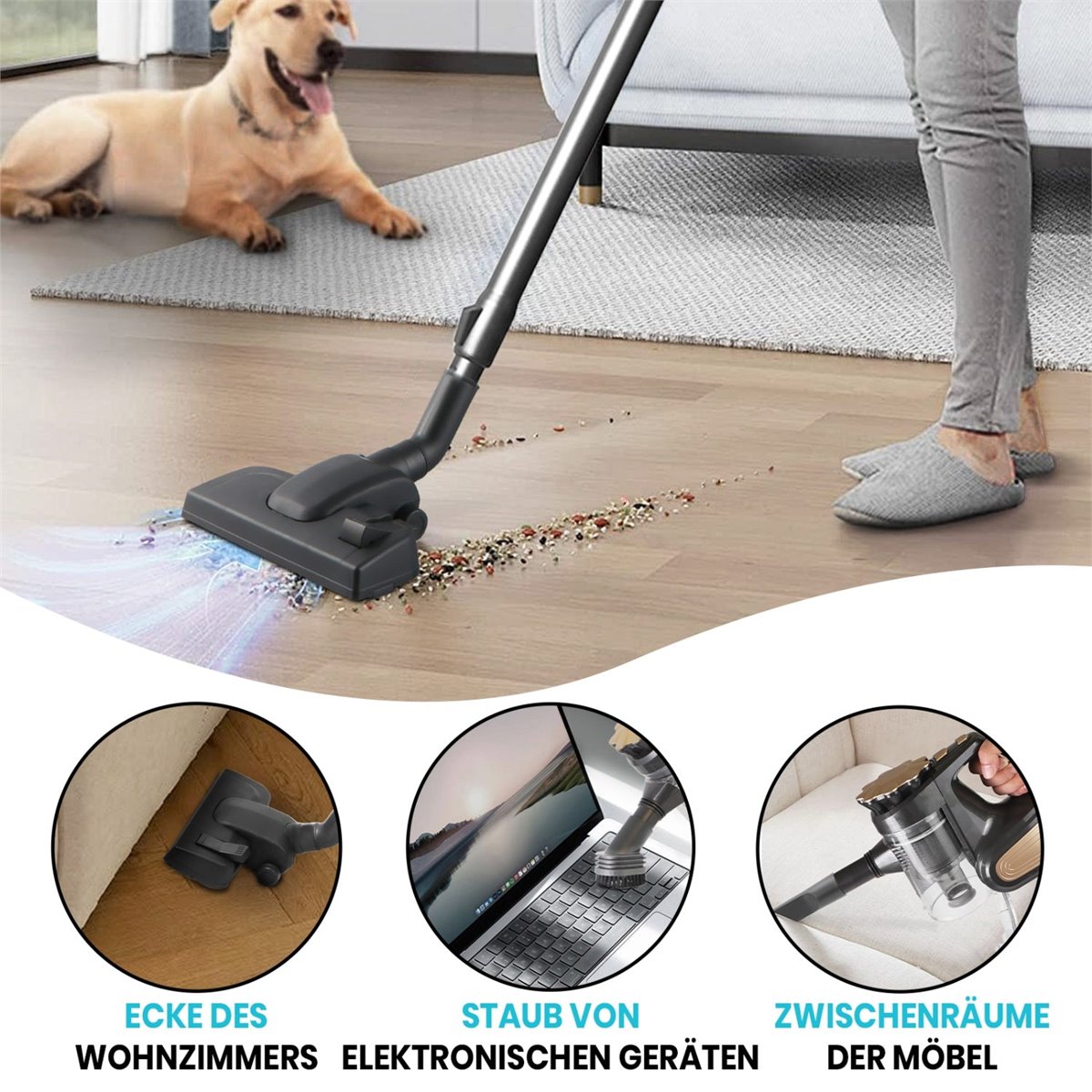 Equipado com bocal para pavimento, bocal para cantos, escova e tubo telescópico. A rotação de 180° + 90° torna-o adequado para áreas de difícil acesso, como debaixo de sofás e cantos apertados.