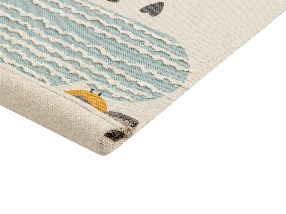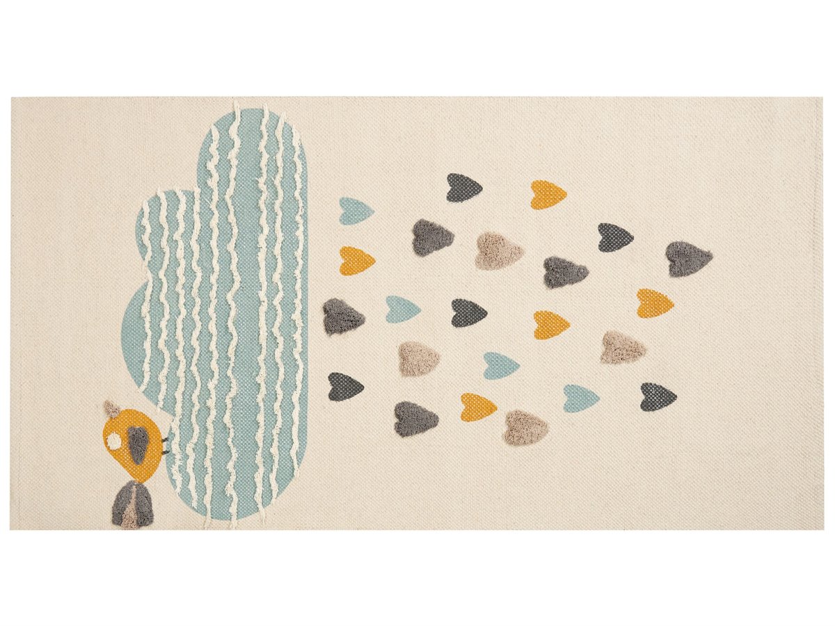 Tapete infantil para sala de jogos. Este tapete trará um toque de magia para qualquer espaço infantil e torná-lo-á mais acolhedor e convidativo. Com um motivo irresistivelmente fofo de um pássaro pousado em uma nuvem fofa com corações minúsculos a cair, este tapete definitivamente chamará a atenção do seu pequeno. Feito à mão em algodão, um material natural e durável, fornecerá uma área de jogo confortável enquanto a camada inferior antiderrapante garantirá segurança. Detalhes: Tipo de Produto: Tapetes para crianças Estilo: Boho Cor: Multicolor Tom: Mostarda Tipo de Material: Tecido Material Principal: Algodão Material Adicional: Poliéster Composição Material: 95% algodão Formato: Retangular Parte Interior anti - deslizante: Sim Densidade: 1150 Desenho: Padrão animal Compatível para Pisos Aquecidos: Não Costura: Tufado à mão Dimensões: Altura: 1.5 cm Largura: 80 cm Comprimento: 150 cm Peso: 1.4 kg A oferta inclui: 1 x Tapete Características Principais: Feito à mão com extrema atenção aos detalhes, Risco de deslizamento reduzido graças à camada inferior antiderrapante, Cores vívidas e alegres, Grande adição para um Berçário ou Quarto de Criança, Acabamentos precisos e perfeitos Informação de Montagem: Não requer montagem Informações Adicionais: Cada peça deste modelo é feita à mão e, assim, o abajur e o padrão podem variar ligeiramente em relação ao modelo apresentado na imagem. Técnica de produção: o tufado manual envolve a injeção de fios na base do tapete usando uma agulha especial. Neste processo, os fios não se integram tão firmemente na base como em outros métodos (por exemplo, tapetes tecidos). Como resultado, alguns fios individuais podem, por vezes, soltar-se. Dicas de Manutenção: Algodão: 1.Para uma utilização confortável, recomendamos arejar o tapete desembalado durante algumas horas (o melhor seria um ou dois dias). Isto permite que o cheiro natural do material se desvaneça 2.Remova todas as manchas imediatamente com um pano húmido que não manche. Limpe da borda para o meio do tapete, não esfregue 3.Gire periodicamente o seu tapete 180 ̊ para garantir um desgaste uniforme e evitar descoloração causada pela exposição ao sol 4.Para manchas difíceis, limpe a superfície com um pano de algodão húmido que não manche. Se necessário, use um líquido de lavagem de lã. Não molhe demais o tapete e seque-o após a limpeza. Use apenas produtos de limpeza recomendados para carpetes. Entre em contacto com um especialista para remover manchas dificies 5.Aspirar uma vez por semana com uma potência de sucção média usando um acessório para tecidos, na direção do pelo.