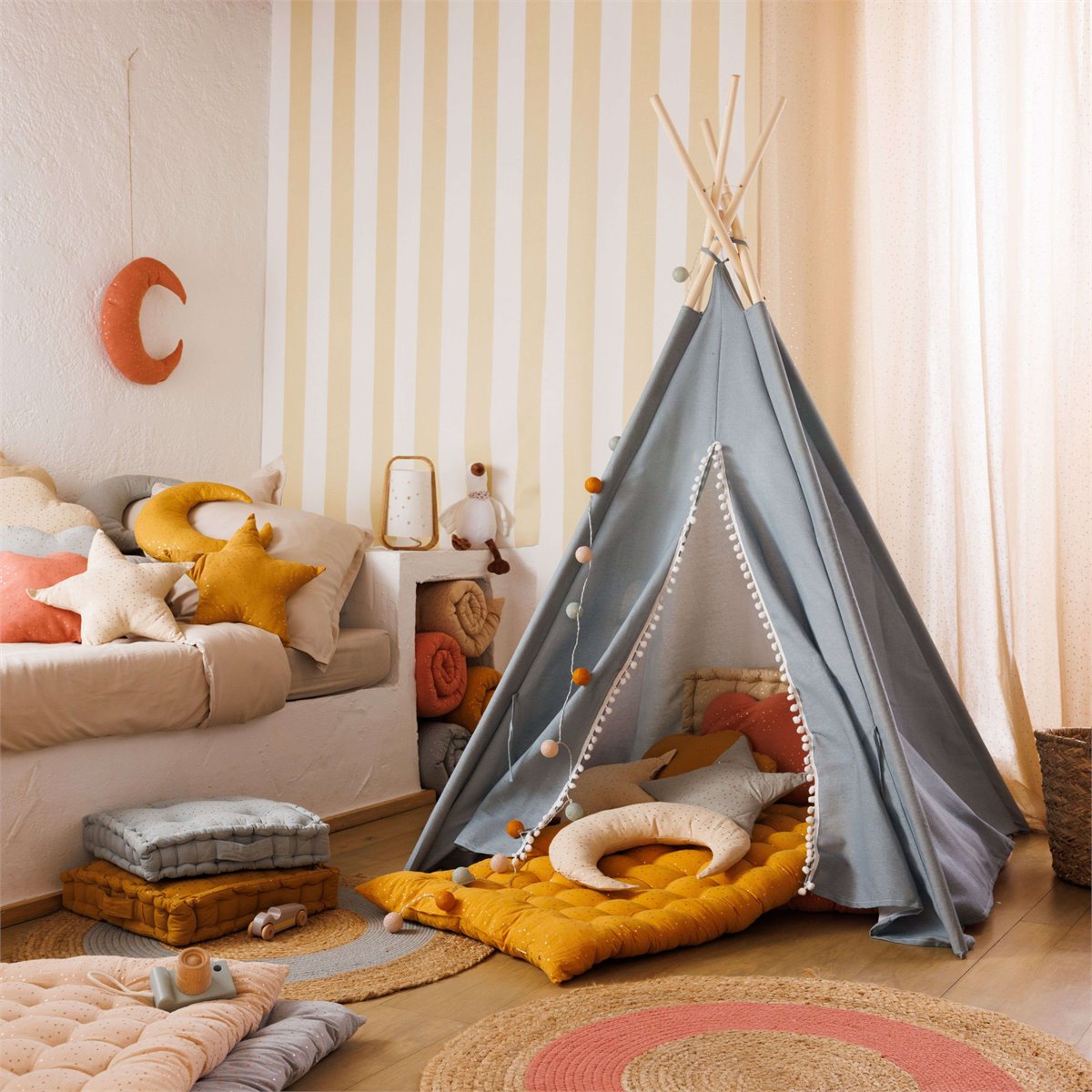 Transforme o quarto do seu pequeno em um mundo de fantasia com a charmosa tenda infantil Wapi. Esta linda tenda, em uma cor azul vibrante, é o refúgio perfeito para a imaginação das crianças. A tenda infantil Wapi não é apenas um item decorativo, mas também um espaço mágico onde seus filhos podem ler, brincar ou sonhar acordados. Feita de poliéster e algodão, ela oferece conforto para horas intermináveis de brincadeiras e aventuras. Seu design portátil e enrolável permite fácil montagem e desmontagem, levando-a para qualquer lugar, seja dentro ou fora de casa. Dê aos seus pequenos o presente de um espaço próprio, onde a criatividade e a diversão não têm limites. Medidas: Largura 120 cm Altura 160 cm Profundidade 120 cm Este móvel vem com um kit de montagem, que inclui um manual de instruções e ferragens.