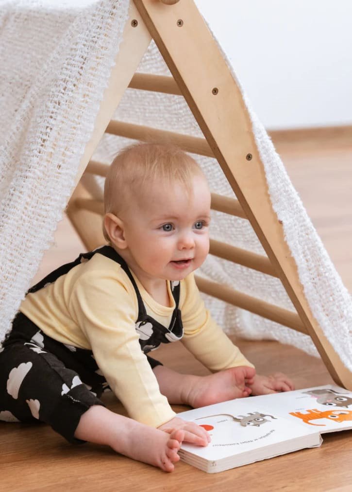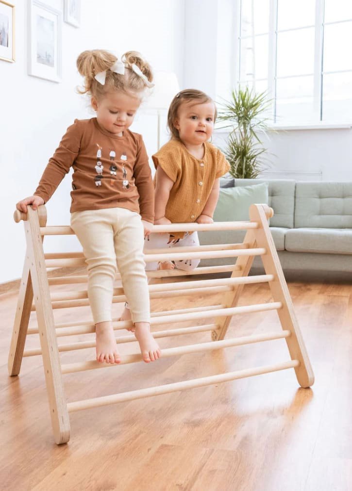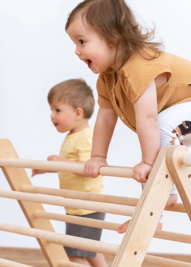 O SIPITRI é um triângulo de escalada modular com duas seções, inspirado nos métodos de ensino de Emmi Pikler. É ideal para crianças a partir de 18 meses que estão começando a ficar em pé e a gostar de escalar e deslizar. A inclinação é ajustável de acordo com a idade e as habilidades da criança, e as seções se separam facilmente para armazenamento compacto.