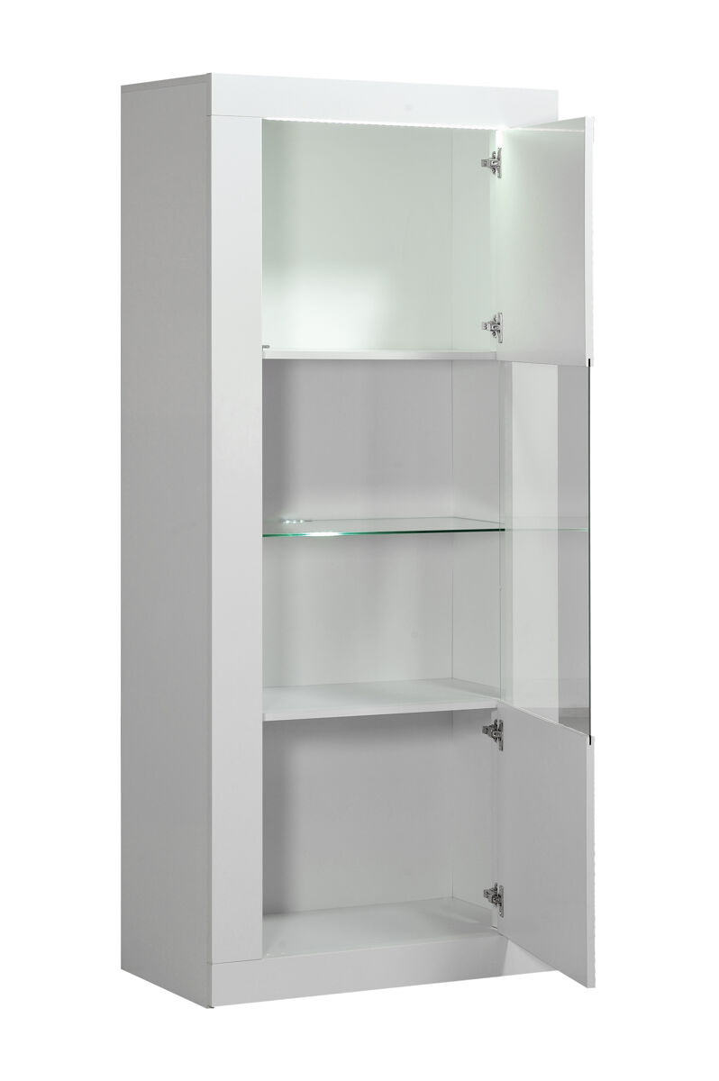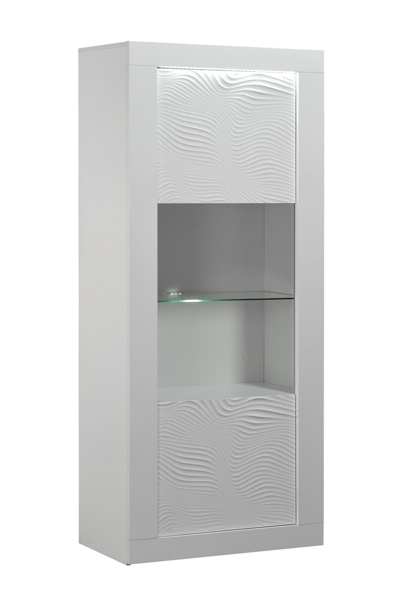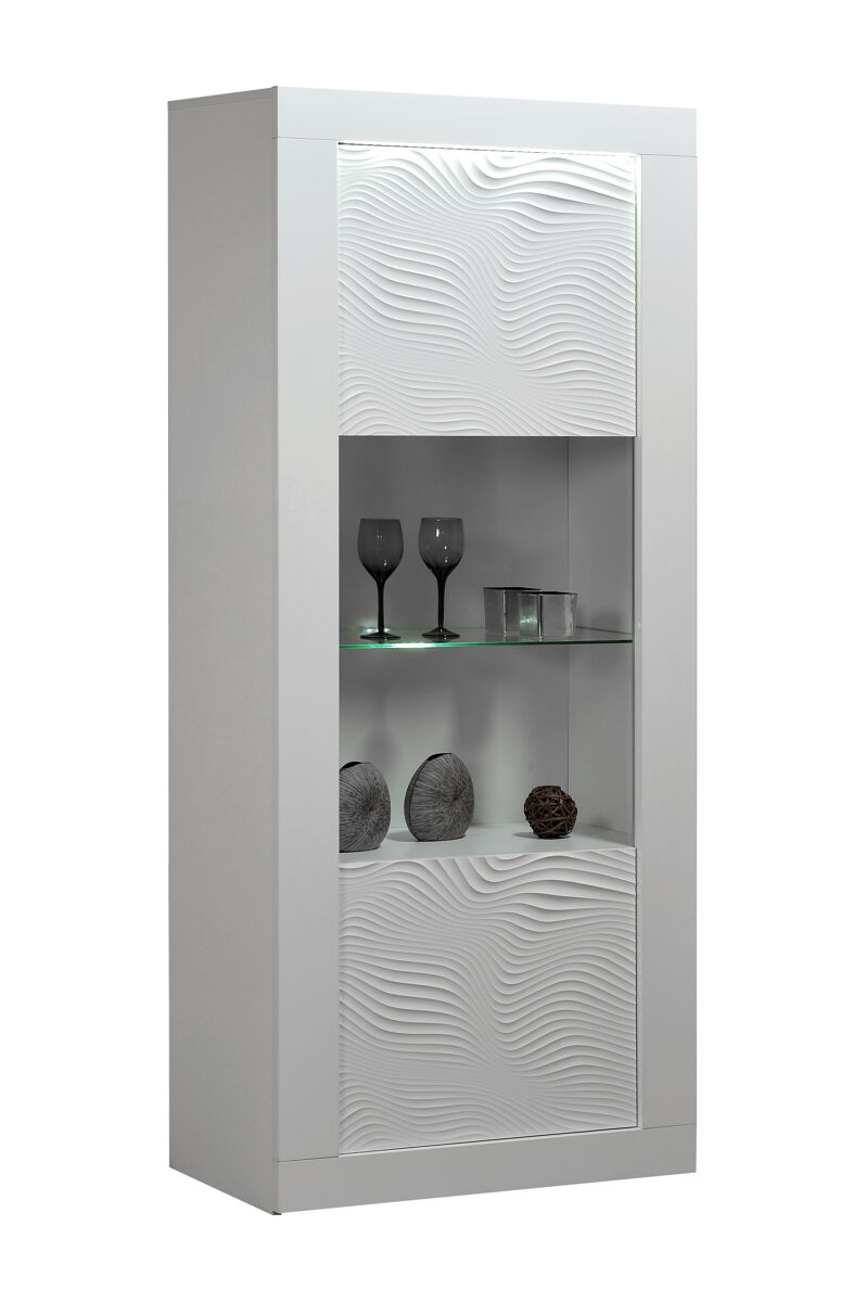 Renove a casa com a sofisticada vitrine DUNE branca. O seu design elegante e moderno é complementado por uma prateleira de vidro, perfeita para exibir os seus objetos favoritos. Quer pretenda destacar uma coleção de livros, souvenires ou serviços de loiça, esta vitrine dá-lhe a oportunidade de os expor sempre forma elegante e organizada. Com acabamento branco brilhante e construção de alta qualidade, esta vitrine combina perfeitamente com qualquer estilo decorativo. Aproveite seu o amplo espaço de arrumação para manter os objetos mais valiosos protegidos contra o pó e danos. Não é apenas uma peça funcional, mas também uma adição impressionante em qualquer ambiente. Descubra o charme e a versatilidade da vitrine DUNE branca com prateleira de vidro e torne os seus objetos favoritos no centro das atenções.
