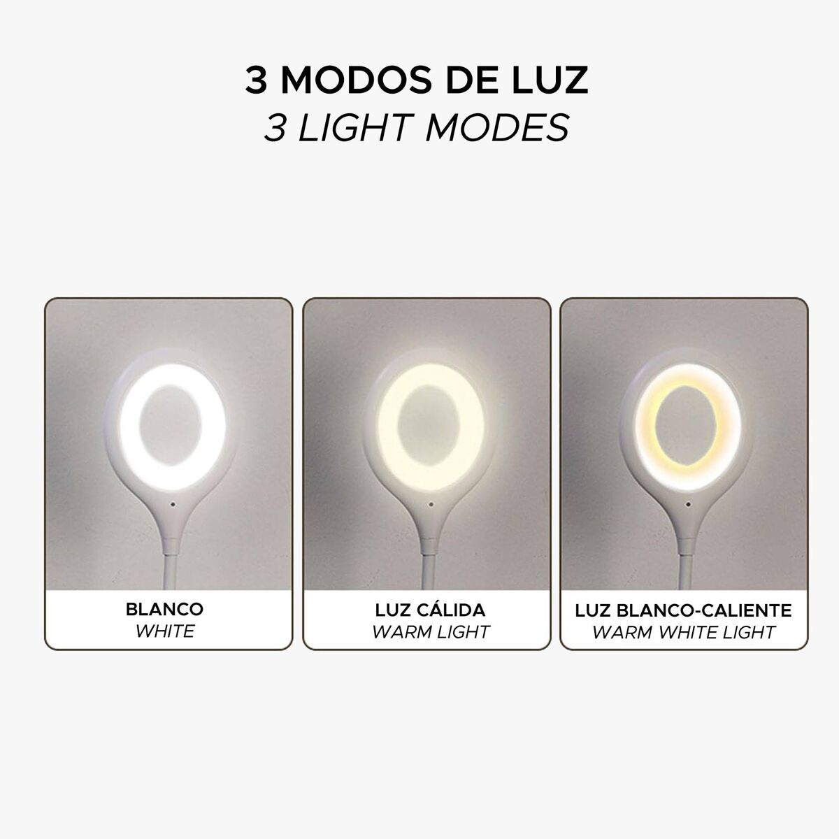 Seus 3 modos de luz (branco, branco quente e branco quente) adaptam-se a diferentes ambientes.