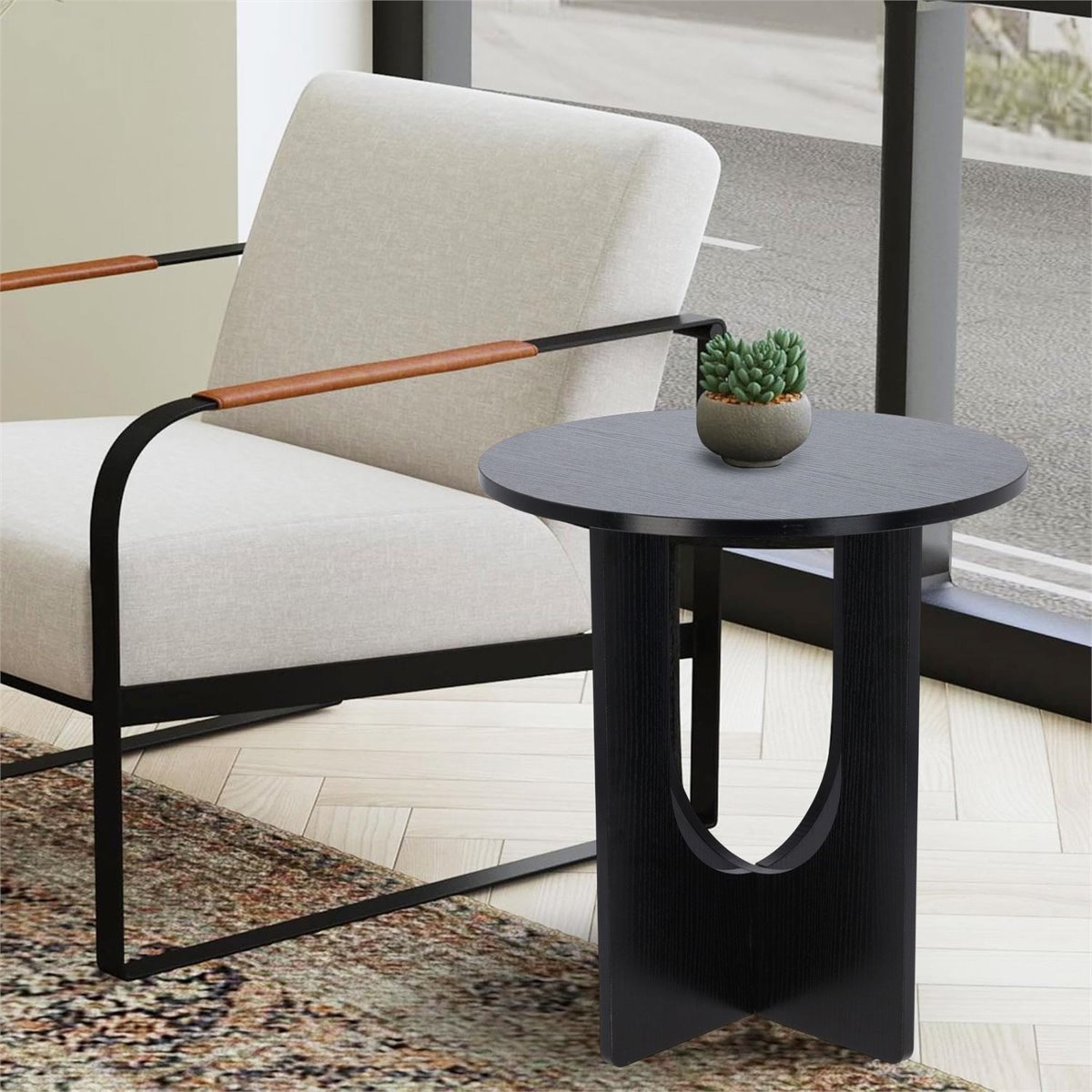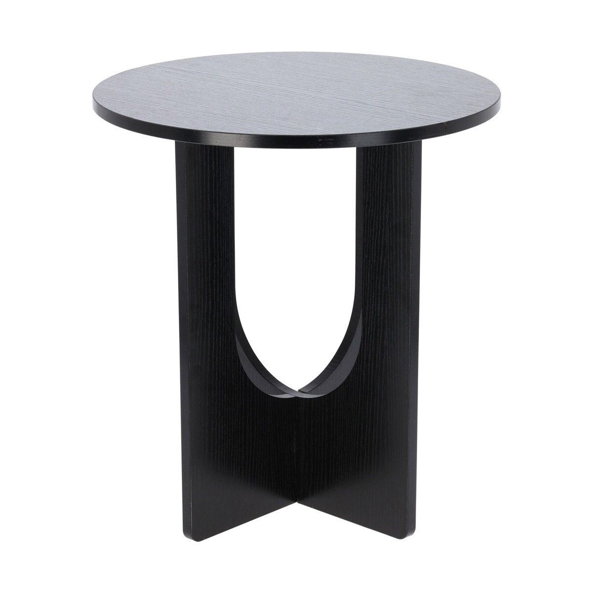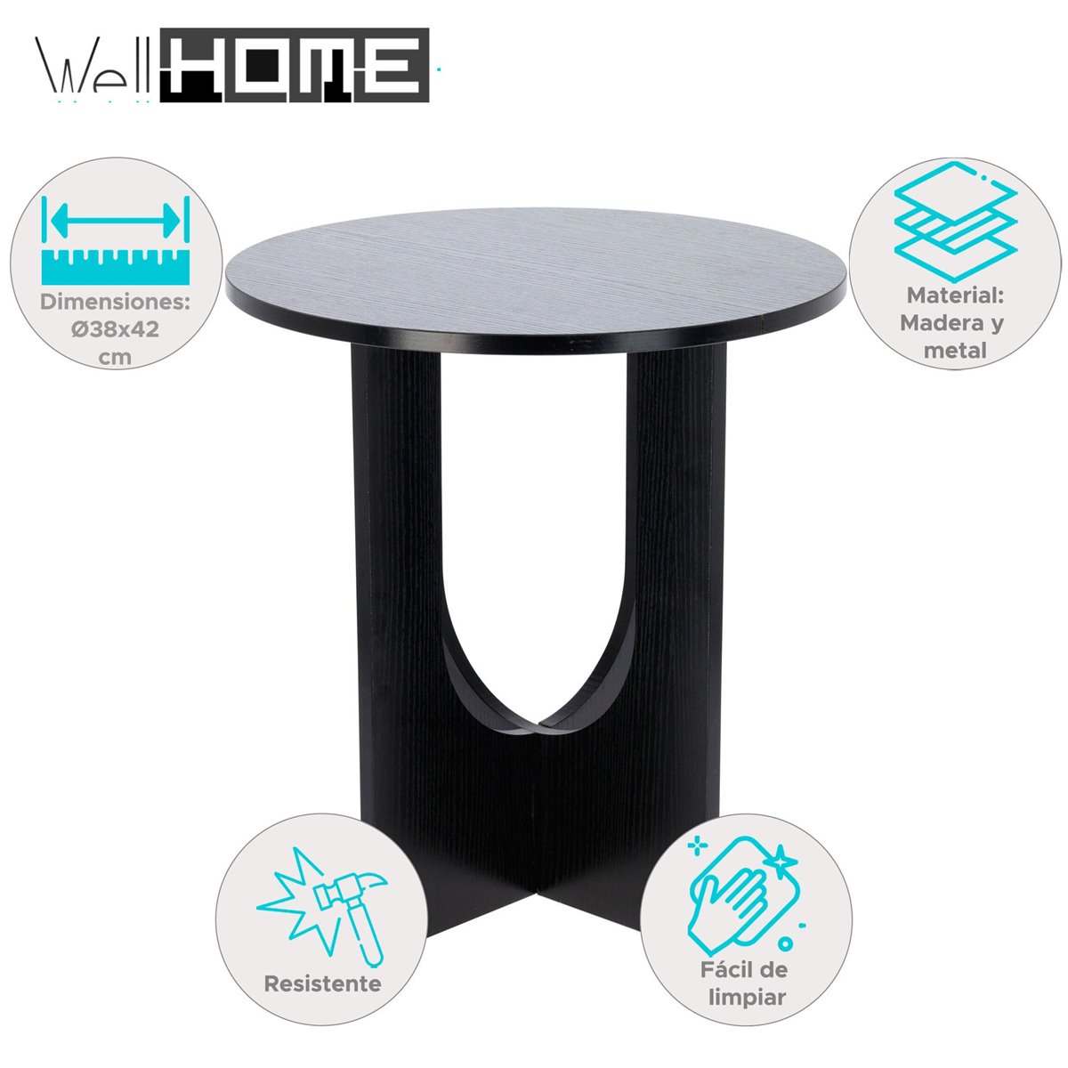 Esta pequena mesa de madeira preta é o complemento perfeito para qualquer espaço.